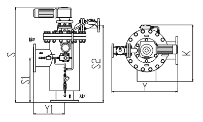 型號(hào) 出入水口管徑 S Y K 經(jīng)濟(jì)流量 濾網(wǎng)面積 重量